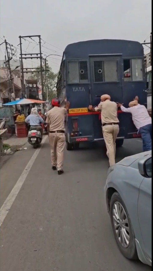 पंजाब के अमृतसर में खजाना गेट के बाहर एक चौंकाने वाला मामला सामने आया है, जहां कैदियों को अदालत ले जा रही पुलिस बस अचानक रास्ते में खराब हो गई। इस दौरान पुलिसकर्मियों को बस से उतरकर उसे धक्का लगाते हुए देखा गया, जिसका वीडियो सोशल मीडिया पर तेजी से वायरल हो रहा है।