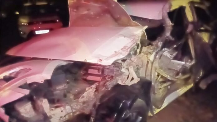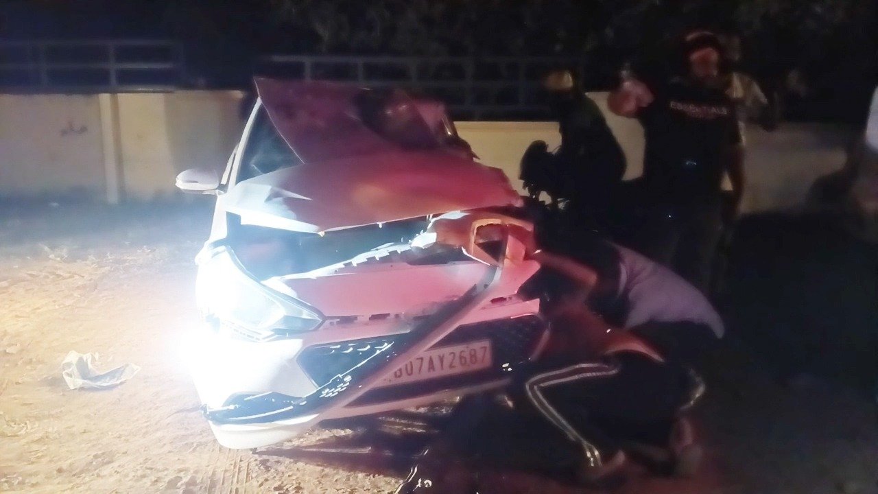 गुरदासपुर में बड़ा हादसा टला: 2 किमी लंबी ट्रॉली कतार में कार घुसी, उड़े परखच्चे