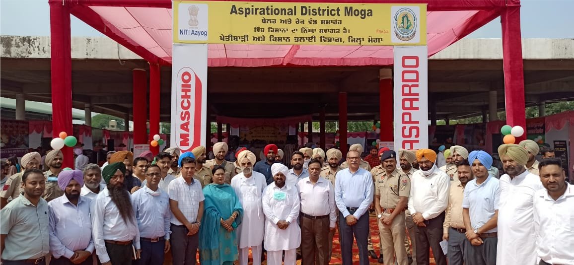 फसली अवशेष जलाने से होने वाले प्रदूषण से जिले को निजात दिलाने के लिए जिला प्रशासन ने एक बड़ा कदम उठाया है।  जिला प्रशासन द्वारा एस्पिरेशनल डिस्ट्रिक्ट प्रोग्राम के तहत प्राप्त 3 करोड़ रुपये की राशि से 20 बेलर आज स्थानीय दाना मण्डी में आयोजित एक समारोह में सहकारी समितियों के माध्यम से किसानों को प्रदान किये गये।  इस अवसर पर मुख्य अतिथि लोकसभा सदस्य मोहम्मद सदीक एवं विशिष्ट अतिथि मोगा विधायक डॉ. हरजोत कमल, फिरोजपुर डिवीजन के कमिश्नर श्री दलजीत सिंह मांगट उपस्थित थे।  इस अवसर पर डिप्टी कमिश्नर श्री संदीप हंस, जिला पुलिस प्रमुख श्री धर्मन एच. निंबले, पूर्व विधायक श्रीमती राजविंदर कौर भगीके, जिला योजना बोर्ड के अध्यक्ष श्री इंद्रजीत सिंह बीर चारिक, नगर सुधार ट्रस्ट के चेयरमैन श्री विनोद बंसल, मैशियो कंपनी के इंडिया हेड श्री पंकज झा आदि सहित अन्य प्रमुख उपस्थित थे।