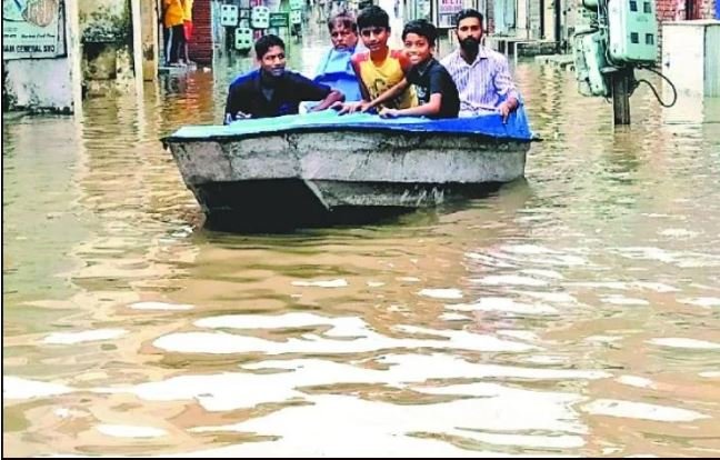 लगातार बारिश से बठिंडा शहर पानी में डूबा , लोगों ने किश्ती चला जताया विरोध