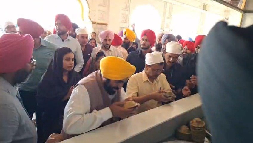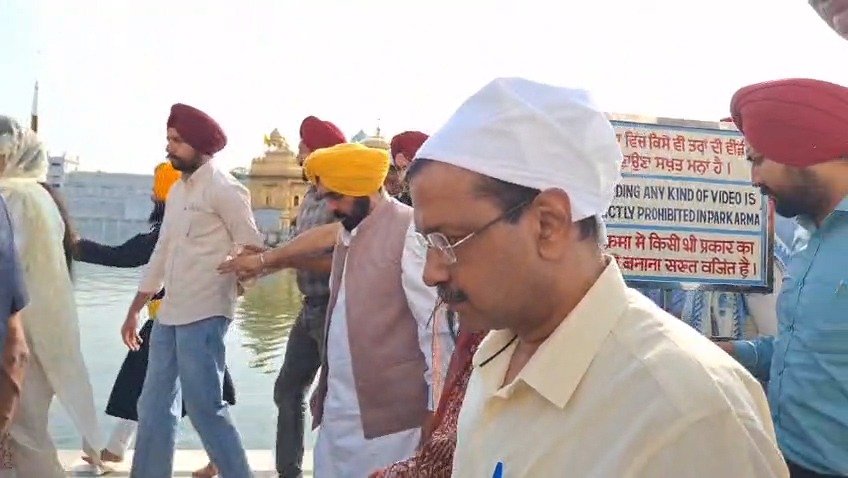 *अमृतसर |* शराब घोटाला मामले में अदालत से राहत मिलने के बाद दिल्ली के पूर्व मुख्यमंत्री और आम आदमी पार्टी के सुप्रीमो Arvind Kejriwal ने पंजाब के मुख्यमंत्री Bhagwant Mann के साथ Sri Harmandir Sahib (सच्चखंड श्री दरबार साहिब) में मत्था टेका। इस दौरान केजरीवाल के परिवार के सदस्य भी उनके साथ मौजूद रहे। दोनों नेताओं ने दरबार साहिब में अरदास कर *सरबत के भले* की कामना की और वाहेगुरु का शुक्राना अदा किया।