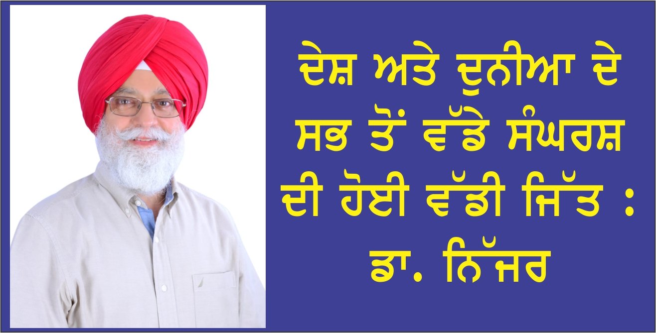 ਦੇਸ਼ ਅਤੇ ਦੁਨੀਆ ਦੇ ਸਭ ਤੋਂ ਵੱਡੇ ਸੰਘਰਸ਼ ਦੀ ਹੋਈ ਵੱਡੀ ਜਿੱਤ : ਡਾ. ਨਿੱਜਰ