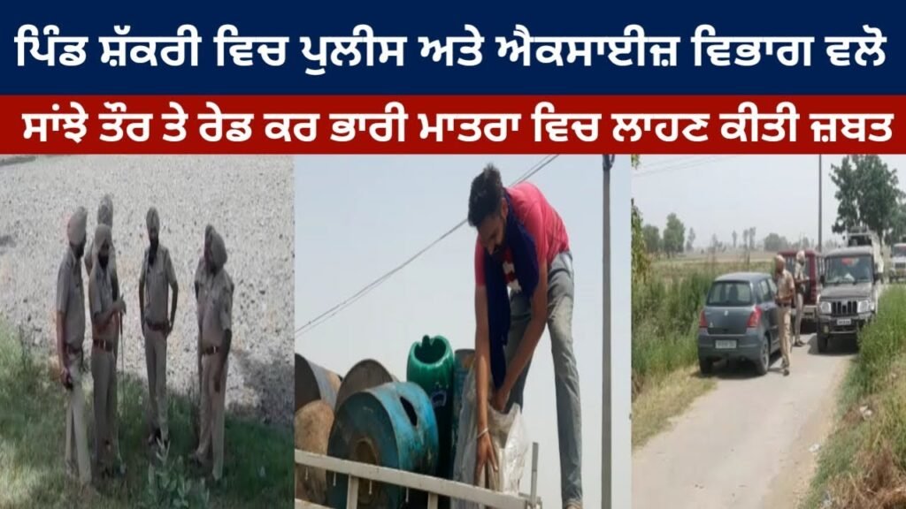 ਤਰਨਤਾਰਨ ਦੇ ਥਾਣਾ ਸਰਹਾਲੀ ਦੇ ਪਿੰਡ ਸ਼ੱਕਰੀ ਵਿਚ ਪੁਲੀਸ ਅਤੇ ਐਕਸਾਈਜ਼ ਵਿਭਾਗ ਵਲੋ ਸਾਂਝੇ ਤੌਰ ਤੇ ਰੇਡ ਕਰ ਭਾਰੀ ਮਾਤਰਾ ਵਿਚ ਲਾਹਣ ਕੀਤੀ ਜ਼ਬਤ